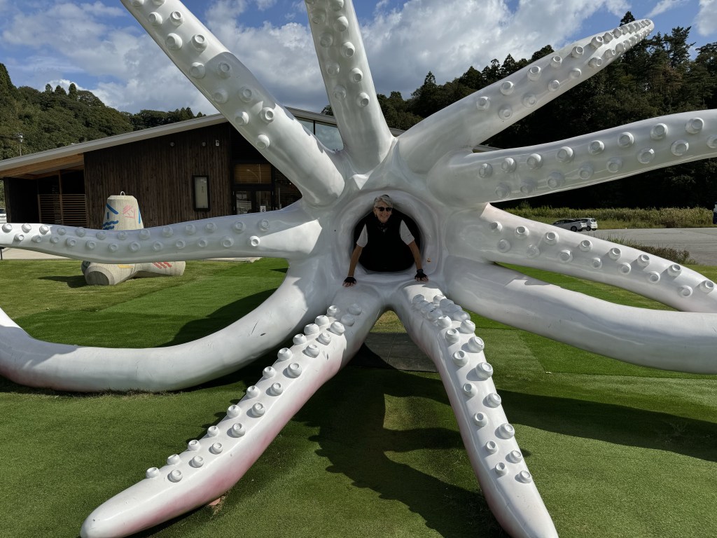 This chill ride featured travel through several tunnels and a stop at the Noto Tsukumo Bay museum and squid 🦑 sculpture. The area has tons of squid fishing boats equipped with a multitude of bright light bulbs to attract the squids while fishing in the dark.